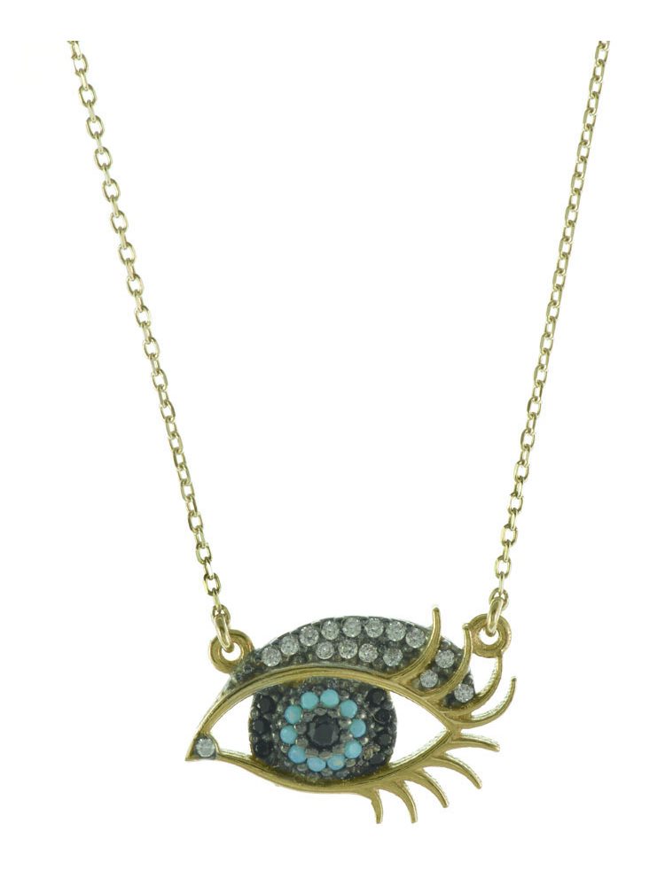 Περιποίηση Κολιέ ματάκι με βλεφαρίδα από επιχρυσωμένο ασήμι με πέτρες ζιργκόν